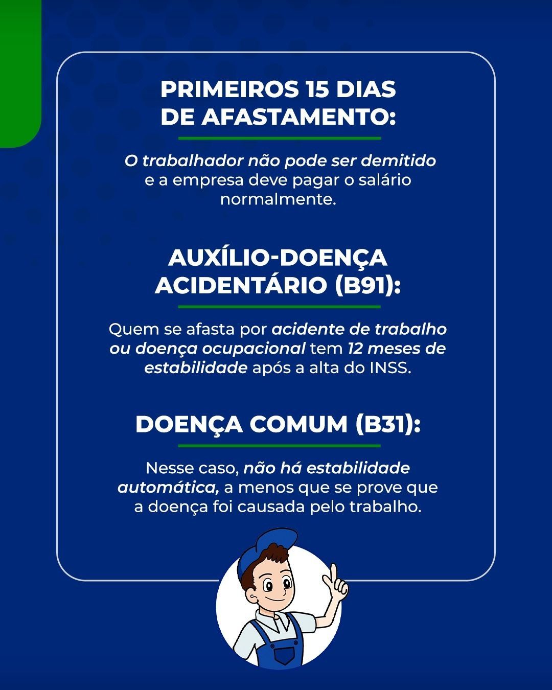 Por isso, separamos informações sobre auxílios, tempo de afastamento e situações em que a estabilidade pode se aplicar 🏥.