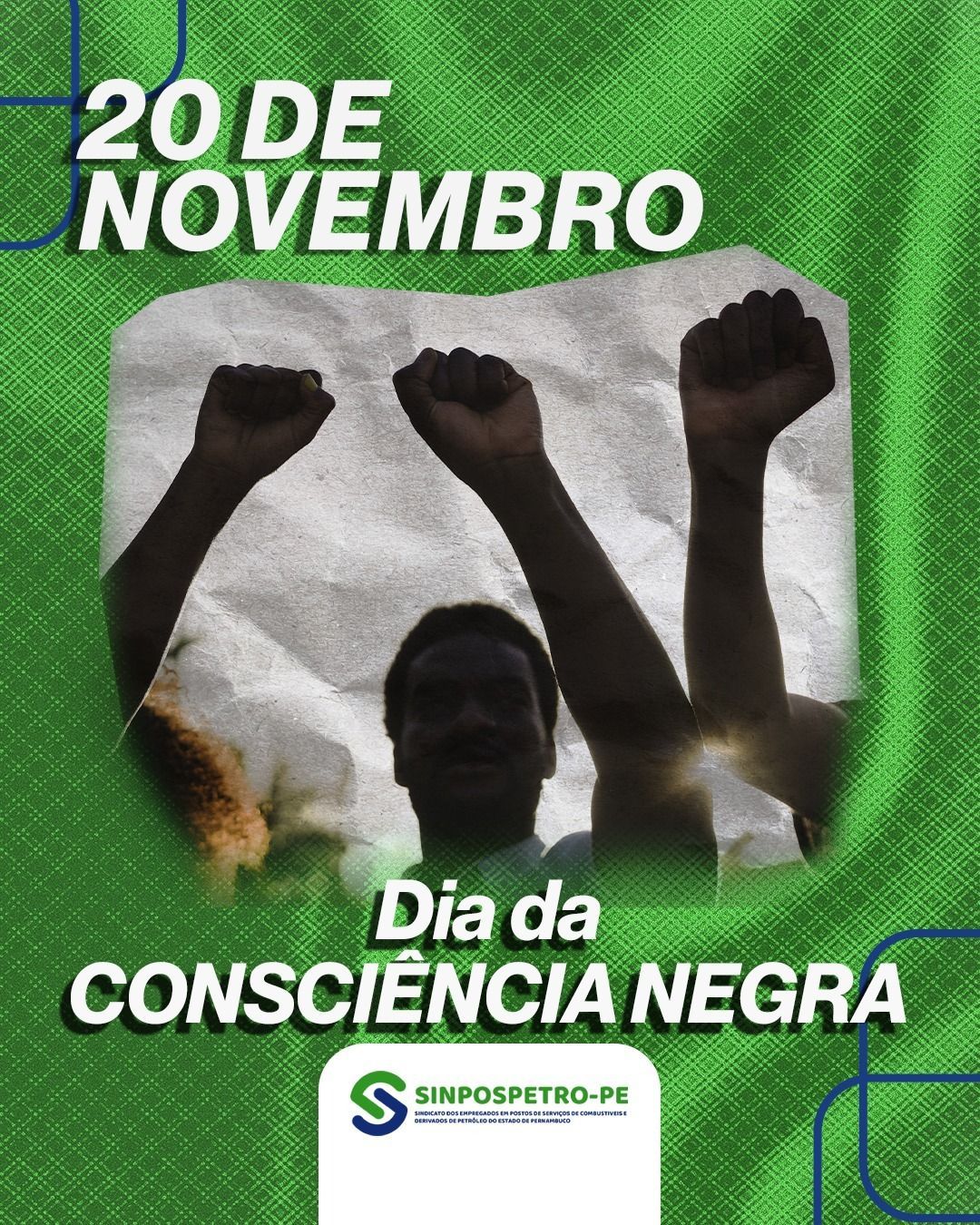 No Dia da Consciência Negra, reafirmamos o compromisso com a luta por igualdade, respeito e dignidade. O Sinpospetro PE segue firme na defesa de direitos e no combate ao racismo, valorizando a história, a força e a resistência do povo negro. Que esta data reforce ainda mais a importância de gerar oportunidades todos os dias e de construir uma sociedade mais igualitária e humana. Juntos, avançamos rumo a um futuro mais justo. ✊🏿