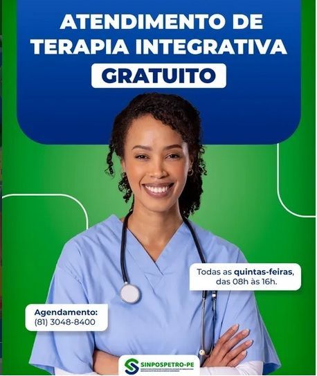 💙 A clínica do Sinpospetro-PE está oferecendo atendimento de terapia integrativa gratuito para os associados. É mais um cuidado voltado ao bem-estar, com práticas que ajudam no equilíbrio do corpo e da mente no dia a dia. Se você é associado, aproveite esse benefício. 📞 Para dúvidas ou agendamento, entre em contato: (81) 3048-8400