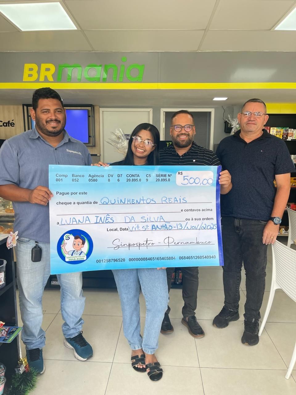 🎉 Entregamos o prêmio de R$500,00 para Luana Inês da Silva, a 22ª vencedora do nosso sorteio semanal. Ela trabalha em um posto localizado em Vitória de Santo Antão e recebeu o valor nesta última segunda-feira (18).